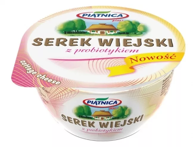 Serek Wiejski z probiotykiem posiada identyczny smak i konsystencję, jak lubiany przez miliony Polaków naturalny serek typu cottage cheese Piątnicy. Składa się on ze specjalnie, termicznie obrobionych ziaren twarożku w delikatnej, pasteryzowanej śmietance. Tym, co go dodatkowo wyróżnia, są walory zdrowotne. Produkt stanowi nie tylko idealną przekąskę – dzięki obecności dodatków (żywych kultur bakterii) wspomaga także prawidłową pracę organizmu.