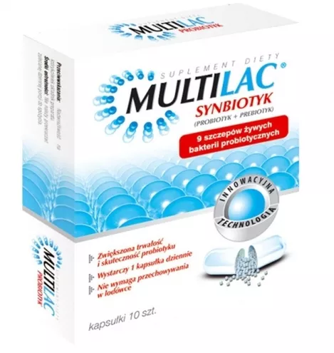 Krokiem dalej w stosunku do tradycyjnej kapsułki jest enkapsulacja. To innowacyjny proces technologiczny, który zastosowano m.in. w produkcji synbiotyku Multilac. Preparat zawiera aż 9 żywych szczepów bakterii probiotycznych, które przywracają i utrzymują prawidłową mikroflorę przewodu pokarmowego. Wzbogacony jest o oligofruktozę - składnik prebiotyczny, który stanowi cenne źródło energii potrzebne do rozwoju bakterii probiotycznych, ponieważ zapewnia im dłuższą aktywność w przewodzie pokarmowym. Enkapsulacja polega na pokryciu kapsułki specjalną powłoczką ochronną, która zabezpiecza bakterie probiotyczne, zawarte w kapsułce, przed niekorzystnymi czynnikami zewnętrznymi takimi, jak: wilgoć, temperatura, niesprzyjające środowisko przewodu pokarmowego. Dzięki enkapsulacji bakterie probiotyczne, obecne w Multilac, docierają do miejsca swojego działania – do jelit i tam rozwijają swoje działanie. Enkapsulacja zapewnia większą trwałość i skuteczność bakterii probiotycznych. Za sprawą enkapsulacji bakterie probiotyczne obecne w Multilac są odporne na wilgoć i temperaturę, dlatego nie wymaga on przechowywania w lodówce. Ze względu na właściwości, Multilac zaleca się stosować w trakcie i po antybiotykoterapii oraz w okresie osłabionej odporności. Ponadto pomocny jest w zaburzeniach czynnościowych jelit (np. zaparciach i biegunkach różnego pochodzenia). W jednej kapsułce Multilac zawarte jest aż 4,5 mld bakterii probiotycznych, co pozwala na stosowanie synbiotyku tylko raz dziennie. Nie zawiera mleka, kazeiny ani konserwantów, dzięki czemu może być przyjmowany przez osoby z alergią na ww. produkty.