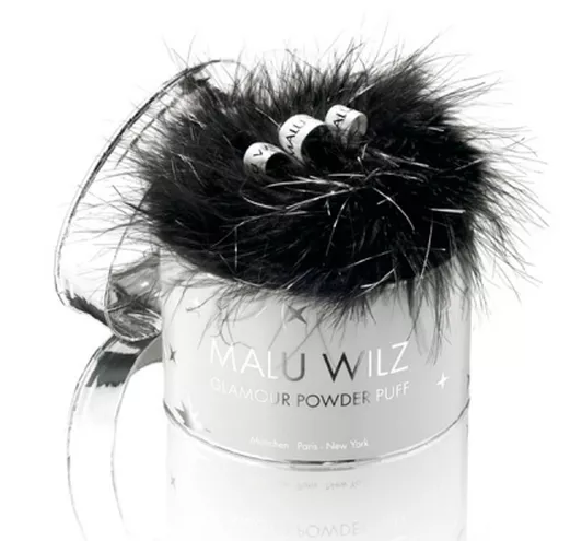 Stylowy puszek wypełniony srebrnym połyskującym pudrem daje piękny efekt lśnienia na twarzy, włosach i ciele.