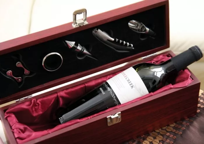 Doskonałym prezentem dla Panów będzie elegancka skrzynka na wino marki GIift Collection. Ten profesjonalny zestaw kiperski doceni każdy miłośnik napoju bogów, zarówno amator jak i koneser wina. Wyściełana atłasem drewniana skrzynka, posiadająca miejsce na butelkę dobrego wina, dodatkowo wyposażona została w niezbędne akcesoria: dozownik, dzięki któremu z łatwością wino trafia bezpośrednio do kieliszka; termometr ułatwiający podanie trunku w odpowiedniej temperaturze; ozdobny korek wykonany z stali nierdzewnej, dzięki któremu otwarte wino nie straci nic ze swoich walorów smakowych; pierścień osuszający dopasowujący się do każdej butelki wina oraz nóż kelnerski będący niezbędnym wyposażeniem każdego barmana. Nie ma na świecie pasjonata tego napoju, który nie marzyłby o takim właśnie eleganckim pudełku, w którym kryją się gustownie wykonane akcesoria. Wraz z butelką dobrego trunku skrzynka na wino marki Gift Collection będzie wymarzonym prezentem dla bliskiej osoby. Szczególnie przydatnym podczas długich, zimowych wieczorów…