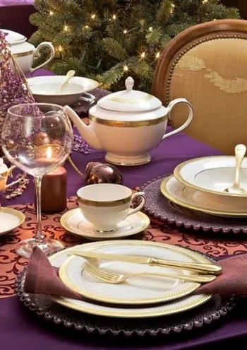 Stół stanowi centralne miejsce podczas każdej uroczystości. Święta Bożego Narodzenia to szczególny czas, kiedy możesz sprawić, że zalśni niepowtarzalnym blaskiem. Przy planowaniu świątecznej aranżacji stołu postaw na złoto. Jest to kolor, który odmieni charakter każdego wnętrza, nadając mu szyku i elegancji. Wybierając zastawę stołową, postaw na białe i kremowo-mleczne odcienie, koniecznie ze złotymi zdobieniami. W kolekcji Plus Gold marki Villa Italia znajdziesz bardzo eleganckie naczynia, których biel została podkreślona bogatym, złotym zdobieniem. Wykonane są z najwyższej jakości porcelany. Kolekcję wyróżnia nowatorski charakter linii. Spodki posiadają charakterystyczne wgłębienie, do którego pasuje nie tylko filiżanka, ale także cukiernica. Gustowne połączenie bieli i złota znajdziesz także w najnowszej kolekcji Rarita marki Villa Italia. Wysokiej jakości porcelana w mlecznym kolorze została ozdobiona lśniącym złotym paskiem, na który ręcznie nałożono misterną dekorację ze złota. Kolekcja prezentuje się bardzo wytwornie na stole i niewątpliwie będzie jego główną ozdobą. Złoto idealnie komponuje się z dodatkami w zdecydowanej barwie. Do obrusu w piaskowym bądź złotym kolorze dobierz czarny bieżnik, złote serwety oraz świece. Jeżeli nie jesteś zwolenniczką dodatków w czarnym kolorze, wybierz np. fiolet. Obrus oraz świece w tym odcieniu będą się bardzo interesująco komponować z biało-złotą porcelaną.