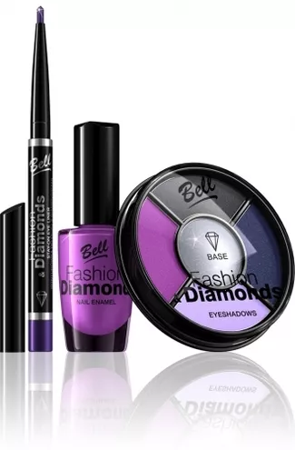 W tegorocznym makijażu karnawałowym baza jest absolutnie diamentowa! To prawdziwy sekret wyjątkowego look`u . Wszystko za sprawą czterokolorowych cieni Fashion & Diamonds ze złotą lub srebrną bazą w kolorystycznych kolażach: fiolet indygo/ametystowa zieleń/czekolada/beż oraz kobaltowy granat/amarant/grafit/kwiat lotosu. Dzięki zawartości mikrocząsteczek miki kosmetyk jest jedwabiście gładki i miękki, zaś aksamitna formuła wzbogacona mikronizowanymi pigmentami gwarantuje ultradelikatne i równomierne rozprowadzenie kosmetyku na powiece.