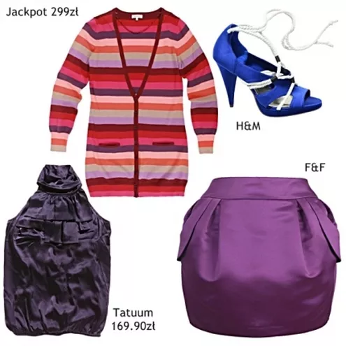 Spódnice- tulipany nazywa się właśnie w ten sposób, ponieważ swoim fasonem przypominają odwrócony o góry nogami uroczy kwiatek. Krój nie jest dopasowany, materiał często lekko marszczony lub układany wokół ud na wzór płatków. Wspaniale podkreśla wąską talię, eksponuje biodra oraz uda- nie jest więc to fason dla krągłych dziewczyn, za to chudzielce będą prezentowały się świetnie. Bogata kolorystyka spódniczek, jaką dysponują sklepy pozwala na wiele fantazyjnych stylizacji i zabaw modą. Ekscentrycznym i odważnym dziewczynom proponuję połączenie różnych odcieni fioletu i różu z kobaltem. To szalone połączenie wyróżni Was w tłumie. Panie lubiące mniej zwariowane połączenia powinny być zadowolone z szarości ożywionej ciemnym, soczystym różem. Trzeci zestaw w radosnych koralowo- różowych fantazjach, „uspokojonych” czarną klasyczną marynarką spodoba się kobietom żywiołowym.