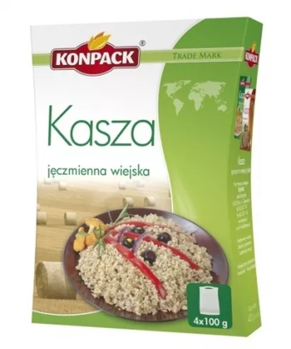 Kasza jęczmienna wiejska doskonale pasuje zarówno do warzyw jak i mięs i doskonale zastąpi tradycyjne w Polsce ziemniaki. Kasza jęczmienna wiejska sprawdzi się także w zapiekankach, no i jest też niezastąpionym składnikiem krupniku. Ugotowaną na sypko można dodawać do sałatek. Dla tych, którzy chcieliby się zdrowo odżywiać, ale brakuje im czasu lub pomysłu na wspomniane wyżej mięso lub zapiekankę Konpack przygotował niespodziankę – zdrowe danie prawie gotowe czyli kaszę jęczmienną z warzywami. Kasza ma wysokie walory odżywcze, a w połączeniu z warzywami stanowi dla naszego organizmu zastrzyk energii. Dodatkową zaletą Kaszy z warzywami Konpacku jest jej łatwość i szybkość przygotowania.