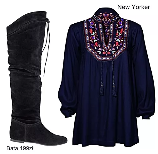 Ciekawa tunika, wąskie spodnie lub ciepłe legginsy i wysokie kozaki- bardzo modne obecnej zimy. Zamsz i skóra- każde z osobna lub w interesującym połączeniu, to obowiązkowy gadżet, który doda nam seksapilu. Wraz z tuniką tworzą wspaniałe zestawienie. W zależności od tego, czy jesteśmy zmarzlakami, czy też zimno nie robi na nas wrażenia, tuniką może być długi wełniany sweter lub cienka,wręcz zwiewna bluzka. W dodatku osiągnięcia kontrastu między ciężkimi butami, a delikatnością tkaniny, to bardzo popularny zabieg. Lekką tunikę możemy „dociążyć” odpowiednim paskiem.