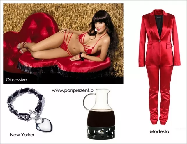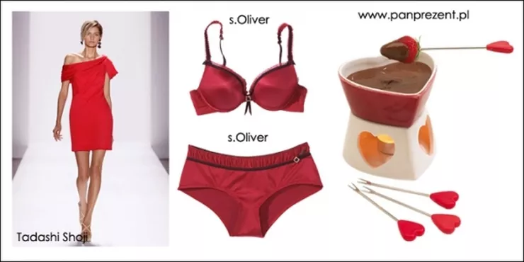 Tylko spokojnie: przed Wami jeszcze cała sobota i na pewno zdążycie coś wybrać. Aby tradycji stało się zadość proponuję aby całkowicie ubrać Walentynki w kolor czerwony- począwszy od bielizny, poprzez sukienkę, na prezencie skończywszy. Twój mężczyzna padnie na kolana, kiedy zobaczy na tobie zniewalającą ognistą sukienkę lub olśniewający, równie gorący garnitur. Pyszna gorąca czekolada podana z czerwonego termosu lub grzane wino rozpalą atmosferę na tyle, że będziesz mogła pochwalić się megaseksowną bielizną przygotowaną specjalnie na tę okazję. Dopieść apetyt wybranka przygotowując fondue z roztopionej czekolady i owoców. Na wieki pokocha cię za album o motorach, o którym marzył od dzieciństwa. Cudownych Walentynek!