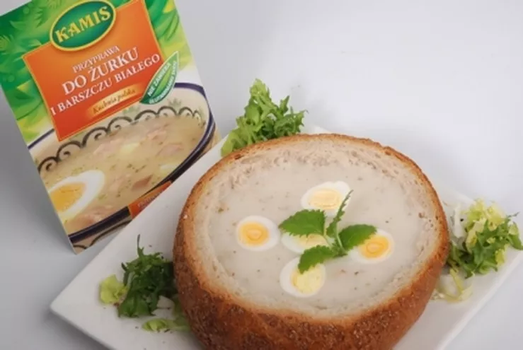 Podroby, oczyścić, obgotować w wodzie, odcedzić, opłukać. Zalać czystą wodą, dodać włoszczyznę, cebulę, liście laurowe, ziele angielskie. Gotować na małym ogniu około 2 godz. Wyjąć wszystko z wywaru, podroby posiekać w cienkie paseczki, dodać ponownie do wywaru. Całość doprawić przyprawą do żurku i barszczu, ponownie zagotować, dodać śmietankę, chrzan. Można podawać z cząstkami jaja na twardo.