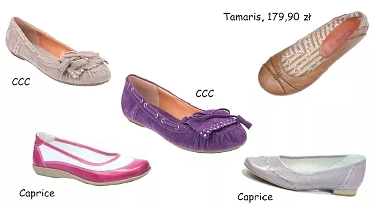 Dla pań ceniących sobie wygodę mamy baleriny, przypominające raczej mokasyny. Jednym słowem do wyboru, do koloru!