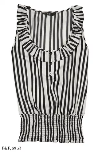 Wyglądają bardzo kobieco, sportowo, ale w towarzystwie odpowiednich dodatków również elegancko. Paseczki pionowe, poziome łączymy nawet razem! Dominują biało-czarne, biało-granatowe oraz biało-czerwone. Przeważają na bluzkach, tunikach, sukienkach i spódnicach. Koniecznie w towarzystwie modnie pomarszczonych bufiastych rękawków.