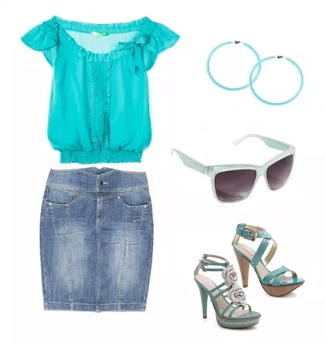 sandały Kazar, 469 zł i 449 zł, kolczyki Cubus, spódnica dżinsowa Butik 99,90 zł, bluzka Cropp 49,90 zł, okulary przeciwsłoneczne H&M