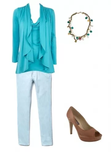 Turkus we wszystkich odcieniach jest kolorem wprost wymarzonym na ciepłe słoneczne dni. Ten tropikalny odcień jest bardzo twarzowy, ładnie podkreśla opalone ciało. Jest bardzo uniwersalny, łatwo można go zestawić z innymi kolorami. W stylizacjach najczęściej łączony jest z brązem. Bardzo dobrze komponuje się również z bladym różem, granatem, bielą i neutralną czernią. Zwróć uwagę na elementy garderoby we wszystkich odcieniach turkusu podczas robienia zakupów.