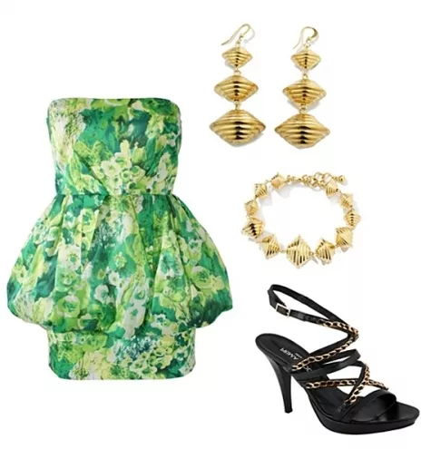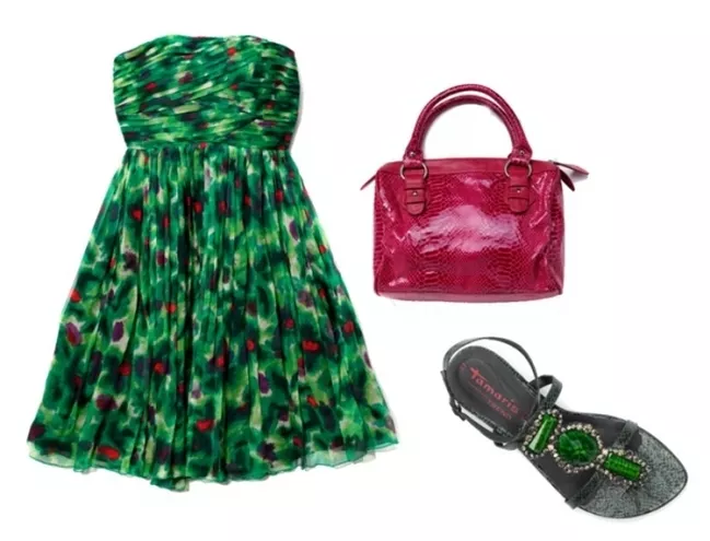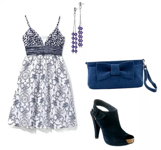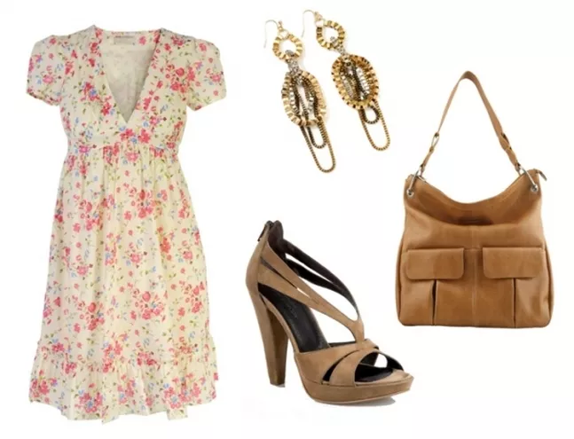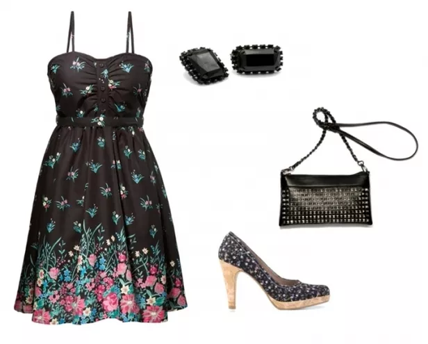 sukienka s. Oliver, torebka House 59,90 zł, czółenka Tamaris 159,90 zł, kolczyki Zielony Kot 69,80 zł