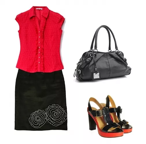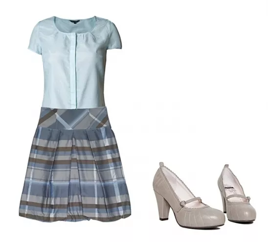 spódnica Taranko 219 zł, bluzka Top Secret, czółenka Vagabond 279 zł