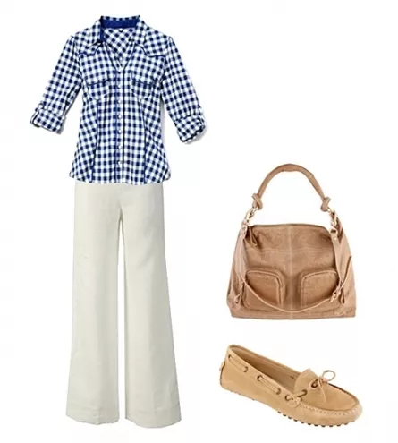 koszula Reserved 79,90 zł, spodnie Solar, mokasyny Prima Moda 239 zł, torebka Prima Moda 699 zł