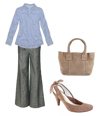spodnie Solar, koszula Tatuum 129,99 zł, torebka Prima Moda 189 zł, czółenka Prima Moda 449 zł