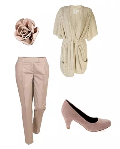 spodnie Top Secret 119,90 zł, sweter H&M 129 zł, broszka New Yorker 19,95 zł, czółenka Prima Moda 279 zł