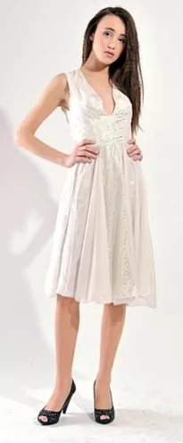W poszukiwaniu kreacji na wesele od razu mój wzrok przykuła kremowa sukienka marki TopShop (250 zł, na zdjęciu). Wyrafinowana, prosta i bardzo seksowna poprzez odkryte ramię. Nie wymaga włożenia biżuterii, bo zamiast naszyjnika mamy doszyty połyskujący kwiatek. Jej ciepła kolorystyka będzie idealna zarówno dla brunetki jak i dla blondynki.