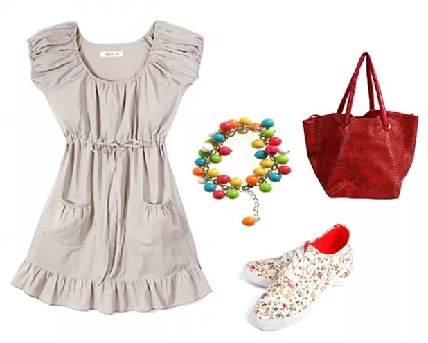 sukienka House 79,90 zł, tenisówki Cropp Town, torebka Stefanel, bransoletka Stereo