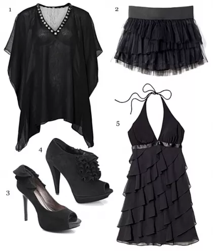 1.tunika Amisu 59,95 zł, 2. spódnica House 79,90 zł, 3. eleganckie czółenka Kazar 349 zł, 4. botki z żabotem Kazar 469 zł, 5. zwiewna sukienka Swing Van Graaf 599 zł