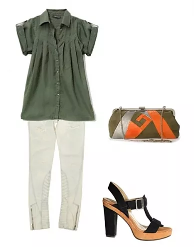 spodnie C&A 139 zł, tunika Tatuum 249,99 zł, uty Prima Moda, torebka Gino Rossi, biżuteria Zielony Kot 39,90 zł i 23 zł