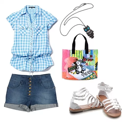 bluzka Reserved 49,90 zł, szorty H&M 79,90 zł, sandały Heavy Duty, wisiorek Cropp Town, torebka Tous 583,10 zł