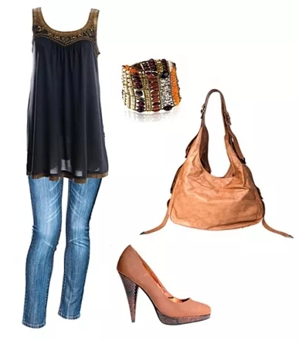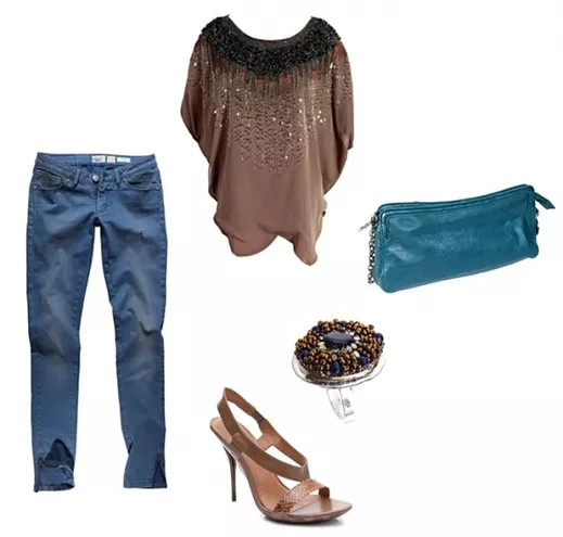 tunika H&M 99 zł, spodnie New Yorker 119 zł, bransoletka W. Kruk, czółenka H&M 129 zł, torebka Stefanel