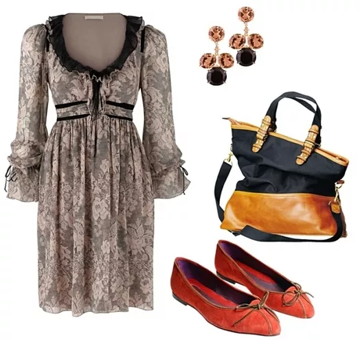 sukienka Cubus, kolczyki W. Kruk, torebka Cubus, baleriny Prima Moda